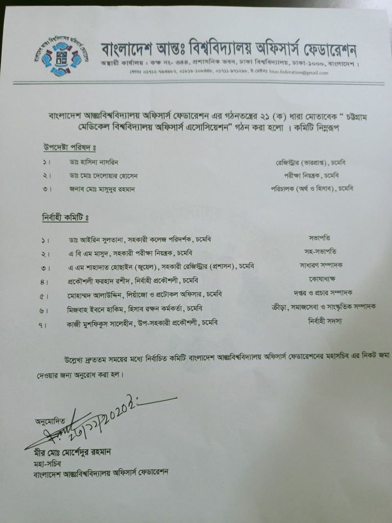 বাংলাদেশ আন্তঃবিশ্ববিদ্যালয় অফিসার্স ফেডারেশনের মহা-সচিব মীর মোহাম্মদ মোর্শেদুর রহমান স্বাক্ষরিত এক প্রেস বিজ্ঞপ্তিতে এই সংবাদ জানানো হয়।