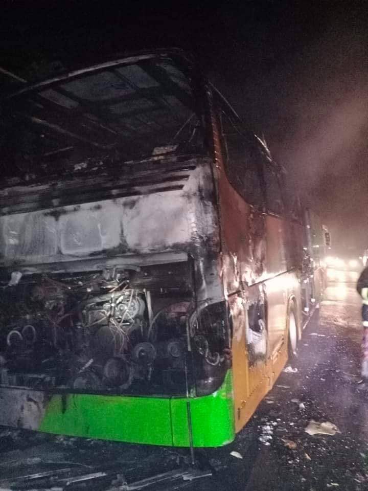 চলন্ত এসি বাসে যান্ত্রিক ত্রুটি হতে আকষ্মিক আগুন প্রাণে বাঁচলেন ৪০ যাত্রী।