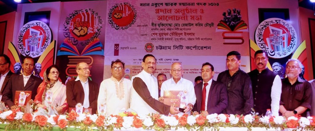মঙ্গলবার (২১ ফেব্রুয়ারি) রাতে নগরীর এম এ আজিজ স্টেডিয়াম সংলগ্ন জিমনেসিয়াম মাঠে আয়োজিত বইমেলায় অমর একুশে ও আন্তর্জাতিক মাতৃভাষা দিবস উপলক্ষে এম এ মালেকের হাতে সম্মাননা পদক তুলে দেন সিটি মেয়র এম রেজাউল করিম চৌধুরী।