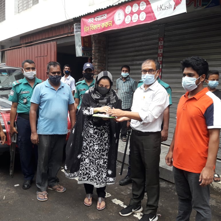 এসময় পথচারীদের মাঝে মাস্ক বিতরণ এবং করোনা ভাইরাস প্রতিরোধকল্পে স্বাস্থ্যবিধি সম্পর্কে সচেতন করা হয়।