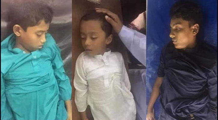 শুক্রবার (৩০ আগস্ট) দুপুরে এ ঘটনা ঘটে। নিহত শিশুরা হচ্ছে- রিফাত (১০), আব্দুল্লাহ আল নোমান (৫) ও ইব্রাহিম (৯)।