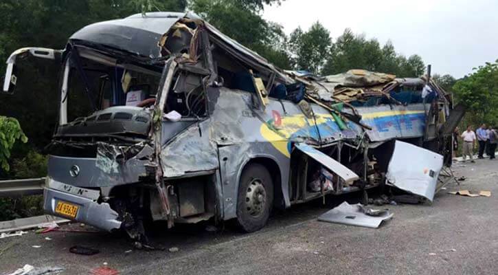 চীনের জিয়াংশু প্রদেশে এ ঘটনা ঘটেছে বলে খবরে জানা যায়। যাত্রীবাহী বাসটিতে ৬৯ জন যাত্রী ছিলেন। এটিই ছিল বাসটির সর্বোচ্চ ধারণক্ষমতা। এ ঘটনায় ৩৬ জন নিহতের পাশাপাশি ৯ জন গুরুতর আহত হয়েছেন। সামান্য আঘাত পেয়েছেন আরও ২৬ জন যাত্রী।