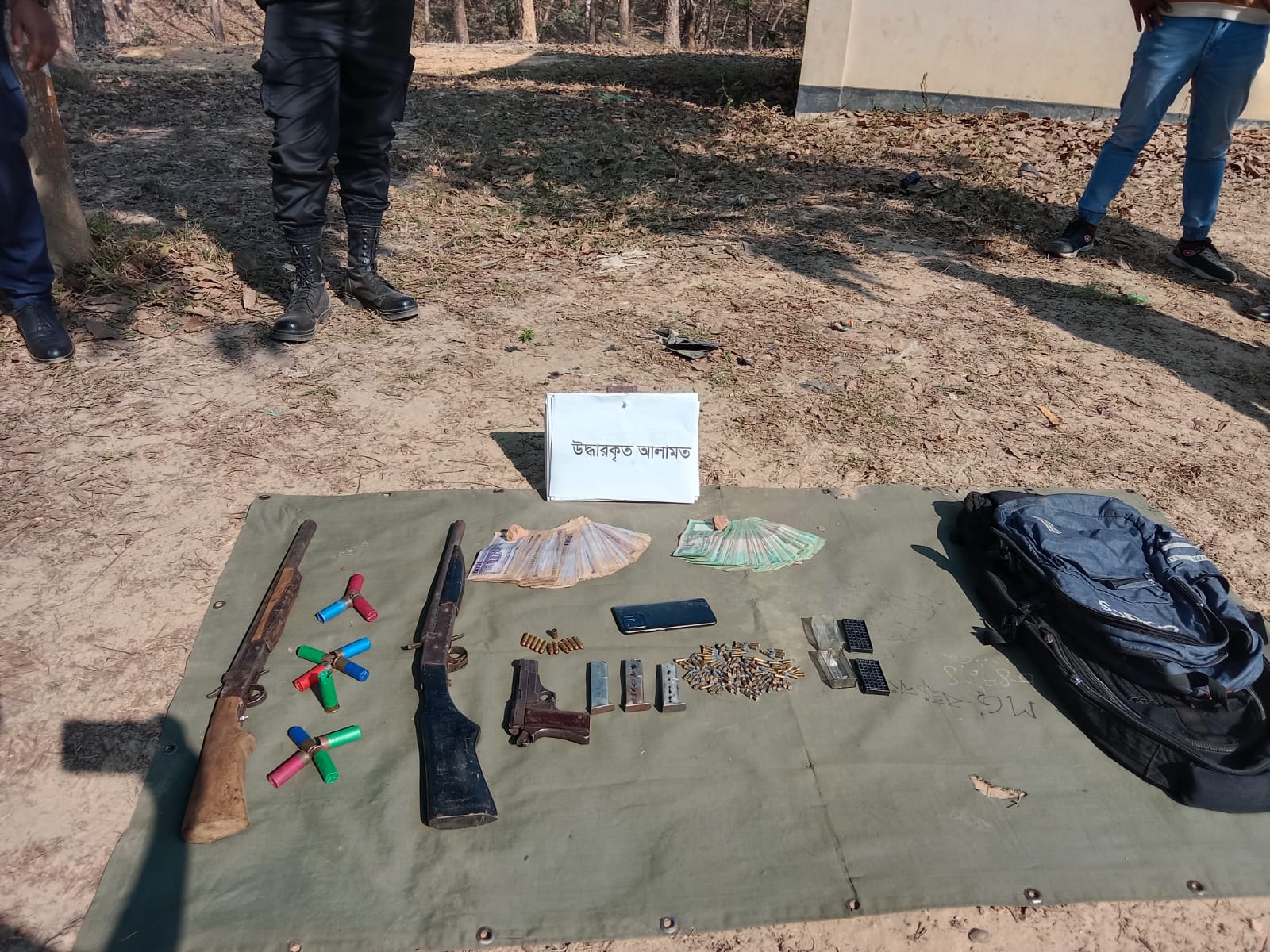 তাদের কাছ থেকে বিদেশি পিস্তল, তিনটা ম্যাগজিন, দেশিয় তৈরি দুটি অস্ত্র, ১১টি কার্টুজ ও আড়াই লাখ টাকা উদ্ধার করা হয়।