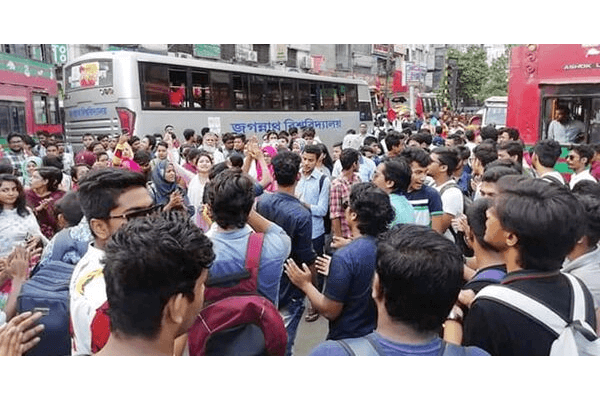 জগন্নাথ বিশ্ববিদ্যালয়ের ৫ শিক্ষার্থীকে র্যাব সদস্যদের মারধরের প্রতিবাদে পুরান ঢাকায় সড়ক অবরোধ করেছে বিশ্ববিদ্যালয়টির সাধারণ শিক্ষার্থীরা।