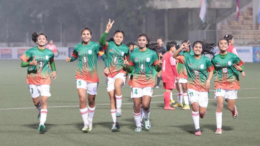 বিকেলে ভারত ও ভুটানের ম্যাচটি ছিল একপেশে। ভারতের কাছে পাত্তাই পায়নি ভুটান। ১০ গোল খেয়ে মাঠ ছেড়েছেন ভুটানের মেয়েরা। তবে বাংলাদেশ জিতলেও নেপাল লড়াই করেছে সাধ্যমতো। দুই গোলে পিছিয়ে পড়ে এক পর্যায়ে ব্যবধান কমিয়ে ১-২ করেছিল। বাংলাদেশ ৩-১ গোলে এগিয়ে যাওয়ার পরই নেপালি মেয়েরা ম্যাচ থেকে ছিটকে পড়ে।