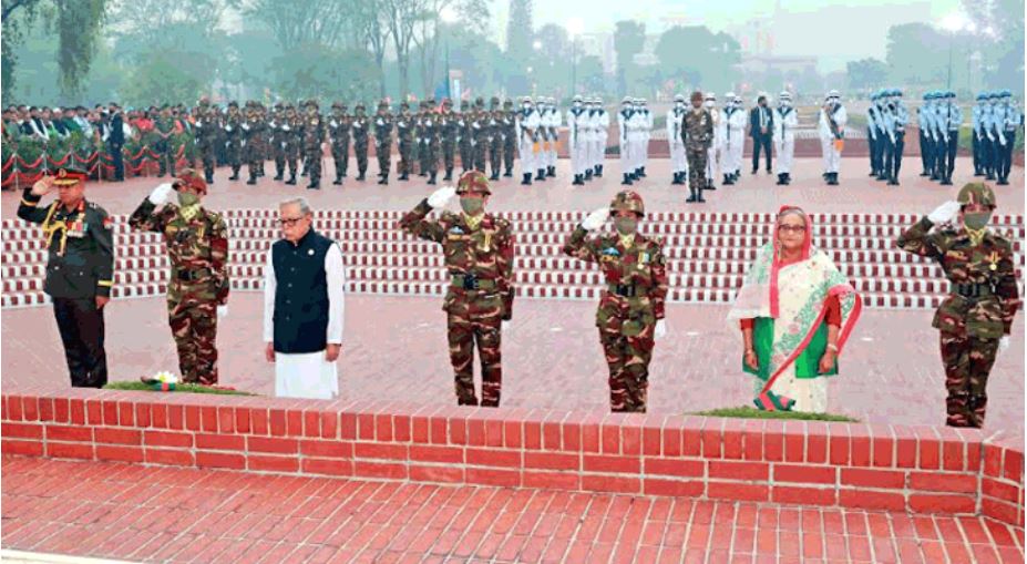 জাতীয় স্মৃতিসৌধে মহান মুক্তিযুদ্ধের বীর শহীদদের প্রতি শ্রদ্ধা জানিয়েছেন রাষ্ট্রপতি মো. আবদুল হামিদ ও প্রধানমন্ত্রী শেখ হাসিনা।