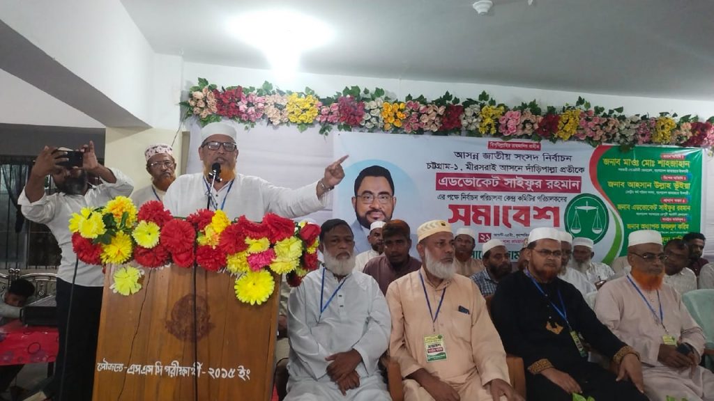 সমাবেশে বাংলাদেশ জামায়াতে ইসলামী নির্বাচন আসন পরিচালক অধ্যক্ষ নুর নবীর সভাপতিত্বে এবং মিরসরাই উপজেলা জামায়াতের আমির মাওলানা নুরুল কবিরের সঞ্চালনায় প্রধান বক্তার বক্তব্য রাখেন বাংলাদেশ সরকারের ডেপুটি অ্যাটর্নি জেনারেল ও জামায়াতে ইসলাম মনোনীত চট্টগ্রামে ১ আসনের প্রার্থী অ্যাডভোকেট সাইফুর রহমান।