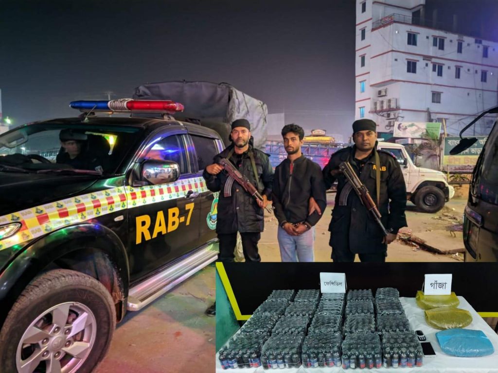 আটককৃতের দেখানো ও সনাক্তমতে তল্লাশী করে, ৪৯৭ বোতল ফেন্সিডিল ও ৪ কেজি গাঁজা উদ্দ্বার করে র্যাব-৭ । উদ্ধারকৃত মাদকদ্রব্যের আনুমানিক মূল্য ৮ লাখ ২৫ হাজার টাকা।