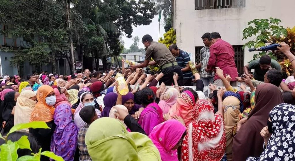 এসময় তেল পেতে হাজারো মানুষ হুমড়ি খেয়ে পড়েছেন। ফলে বেলা দেড়টার মধ্যে সব তেল শেষ হয়ে গেলে তেল না পেয়ে অনেকে হতাশ হয়ে ফিরে যান।
