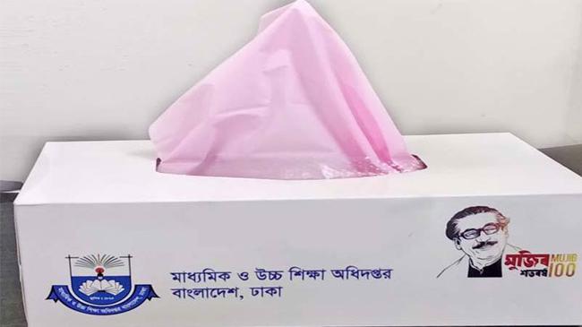 টিস্যু বক্সে জাতির পিতা বঙ্গবন্ধু শেখ মুজিবুর রহমানের জন্মশতবর্ষের লোগো ছেপে সমালোচনার সম্মুখীন হয়েছে মাধ্যমিক ও উচ্চ শিক্ষা অধিদপ্তর (মাউশি)। এ বিষয়ে কঠোর অবস্থানের কথা জানিয়েছেন শিক্ষাউপমন্ত্রী ব্যারিস্টার মহিবুল হাসান চৌধুরী নওফেল।