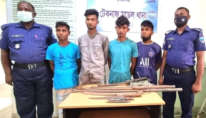 আটকরা হল, টেকনাফ উপজেলার বাহারছড়া ইউনিয়ন শামলাপুর এলাকার আবু বক্কর(২৮), সিরাজুল মোস্তফা (২৩), মো. আরমান(২০) ও রোহিঙ্গা মো. ইউনুস (২৫)।