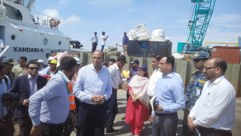 সেখান থেকে নির্মাণাধীন বন্দর এলাকায় গিয়ে তিনি সমুদ্র বন্দর ও কয়লা বিদ্যুৎকেন্দ্র প্রকল্প সংশ্লিষ্ট কর্মকর্তাদের সাথে মতবিনিময় করেন এবং প্রকল্পের অগ্রগতি সম্পর্কে খোঁজখবর নেন। এরপর তিনি মহেশখালীর সিঙ্গেল পয়েন্ট মুরিং (এসপিএম) প্রকল্প পরিদর্শন করেন।