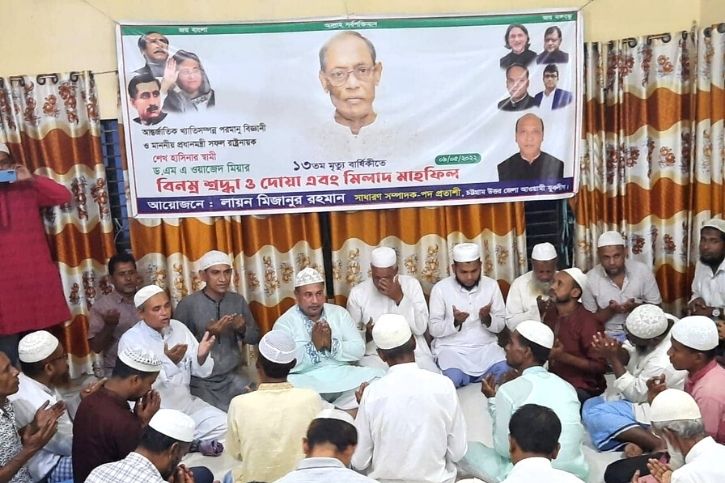 আন্তর্জাতিক খ্যাতিসম্পন্ন পরমাণু বিজ্ঞানী ও প্রধানমন্ত্রী শেখ হাসিনার স্বামী ড. এম এ ওয়াজেদ মিয়ার ১৩তম মৃত্যুবার্ষিকীতে দোয়া ও মিলাদ মাহফিল করেছেন চট্টগ্রাম উত্তর জেলা আওয়ামী যুবলীগের সাধারণ সম্পাদক পদ প্রত্যাশী লায়ন মিজানুর রহমান।