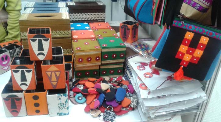 মেলায় হাতে তৈরি আকর্ষণীয় সব চামড়ার ব্যাগ, বেল্ট, মানিব্যাগ, জুতো, গহনা, শাল, জামদানি ও তাঁতের শাড়ি, ফতুয়া, বিষমুক্ত শুঁটকি, প্লাস্টিক পণ্য, খাদ্যপণ্য, শিল্পকারখানার যন্ত্রপাতির স্টল রয়েছে। জলরং, এসআর হ্যান্ডিক্রাফটস, থ্রি টেক, অ্যানেক্স বাংলাদেশ, জরিফ এন্টারপ্রাইজ, জুট ডাইভারসিফিকেশন প্রমোশন সেন্টার, কিয়াম মেটাল ইন্ডাস্ট্রিজ, এফএম প্লাস্টিক, এশিয়ান টুরিজ্যম, ঐক্য স্টোর, অমৃত ফুড, মাহি অ্যাগ্রো, গ্রো বিজ ইন্ডাস্ট্রিজ, শতরঞ্জি পল্লি রংপুর লিমিটেড, শামশাদ, রেহা টেক্সটাইল, স্বীকৃতি বুটিক অ্যান্ড হ্যান্ডিক্রাফট, ফ্রু ফ্রূ চো ফ্যাশন, মম জামদানি হাউস, নিয়ন্তা বুটিক, কানিসকা, শখ ক্রাফটস, বুনি সুতা, পিপলস ফুটওয়্যার অ্যান্ড লেদার গুডস, দয়িতা জুয়েলারি, কেএসএফ ট্রেডার্স, সিফাত বুটিক, ভাড়াগাড়ি.কমের স্টল রয়েছে।