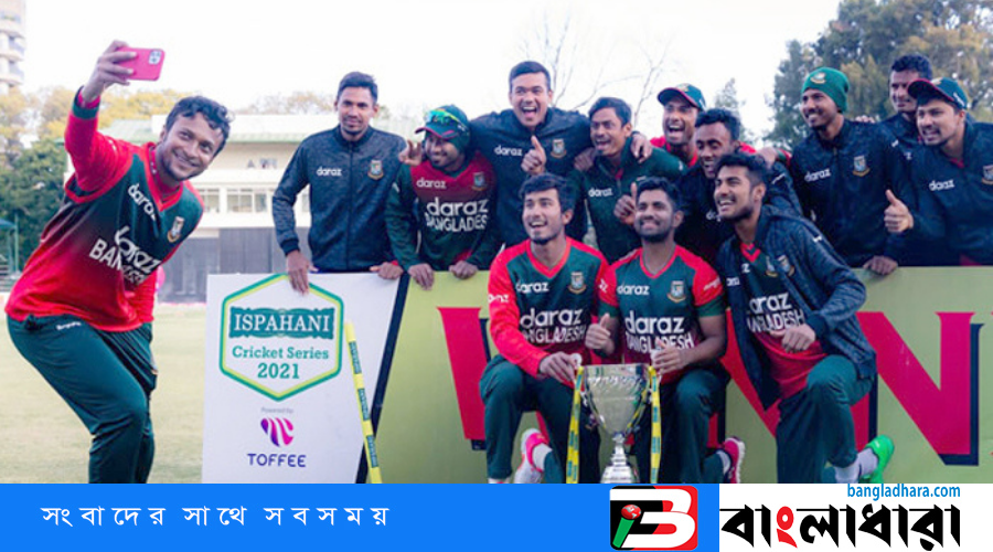করোনাকালে আরেকটি সফর নিরাপদে শেষ করেছে বাংলাদেশ ক্রিকেট দল। অবশ্য জিম্বাবুয়ে সফরে প্রাপ্তির খাতাই বেশি ভারী ছিল। এই সফরে টেস্ট, ওয়ানডের পর টি-টোয়েন্টি সিরিজের ট্রফিও জিতেছে বাংলাদেশ দল। তিন সিরিজের ট্রফি নিয়ে বৃহস্পতিবার (২৯ জুলাই) সকাল ৯টায় দেশে ফিরেছেন সাকিব-মুস্তাফিজরা।