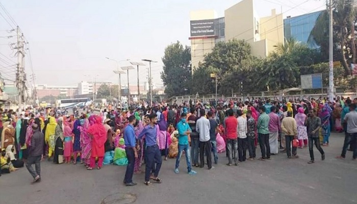 রাজধানীতে পোশাক শ্রমিকদের সড়ক অবরোধ, দুর্ভোগে যাত্রীরা