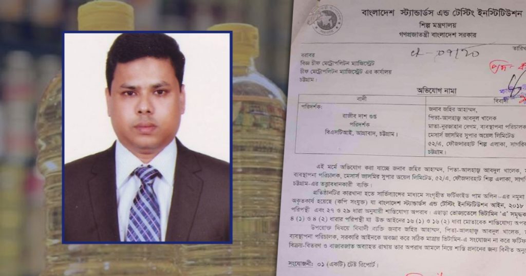আদালত সূত্রে জানা যায়, মেসার্স জাসমির সুপার অয়েলের ফর্টিফায়েড ভোজ্য তেলে নির্ধারিত মাত্রার তুলনায় কম পরিমাণে ভিটামিন-এ পাওয়ায় ২০১৯ সালের ২০ অক্টোবর মামলাটি দায়ের করে সরকারের মান নিয়ন্ত্রক সংস্থা বাংলাদেশ স্ট্যান্ডার্ডস অ্যান্ড টেস্টিং ইনস্টিটিউশন। মামলাটি করেন বিএসটিআইয়ের সে সময়ের পরিদর্শক রাজীব দাশগুপ্ত।