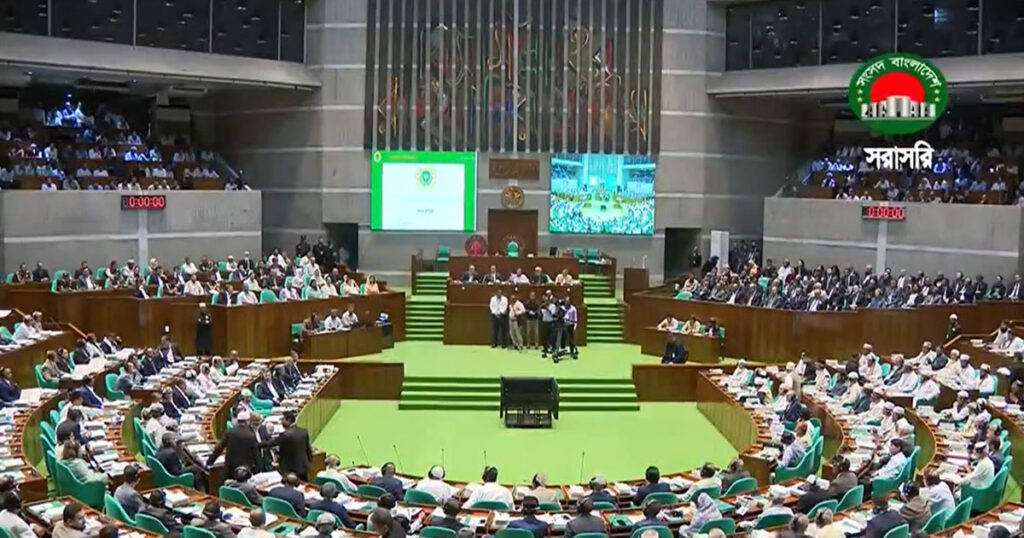 সংসদ কক্ষে স্পিকারের আসন ফাঁকা রয়েছে। আজকের অধিবেশনের দলীয় কৌশল নির্ধারণে গতকাল বুধবার সরকার ও বিরোধীদলীয় এমপিরা আলাদা সংসদীয় দলের বৈঠক করেছেন। তবে এখন পর্যন্ত স্পষ্ট হয়নি– শুরুর বৈঠকে কে সভাপতিত্ব করবেন এবং নতুন সংসদের স্পিকার ও ডেপুটি স্পিকার কে হচ্ছেন। গতকালের বৈঠকে সংসদ নেতা ও প্রধানমন্ত্রী তারেক রহমান তার দলের অবস্থান অনুযায়ী নোট অব ডিসেন্ট (আপত্তি) সহকারে জুলাই সনদ বাস্তবায়নের ইঙ্গিত দিয়েছেন।