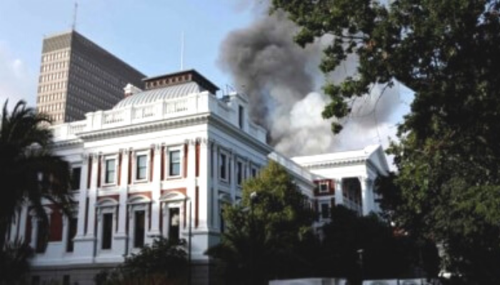 পার্লামেন্ট ভবন এবং এর ছাড়ে আগুন লাগার ঘটনা এএফপিকে নিশ্চিত করেছেন কেপ টাউনের জরুরি বিভাগের মুখপাত্র।