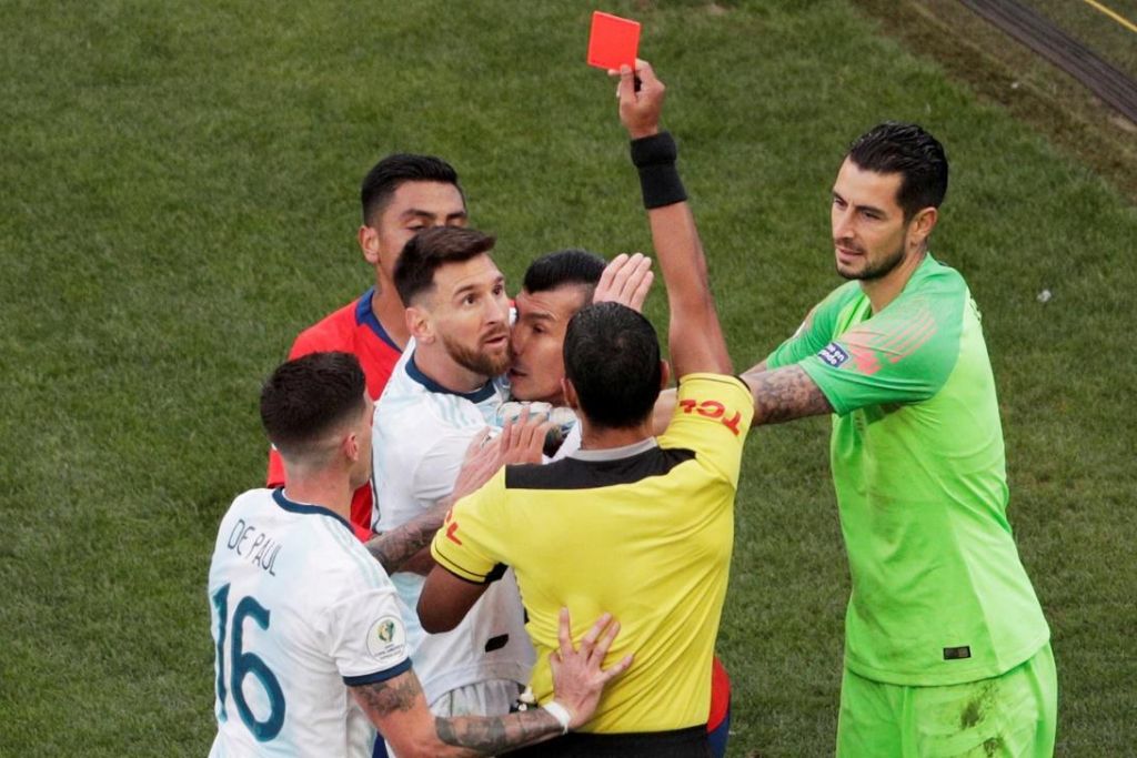 চিলির বিপক্ষে তৃতীয় স্থান নির্ধারণী ম্যাচে ধাক্কাধাক্কিতে জড়িয়ে সরাসরি লাল কার্ড দেখেছিলেন মেসি ও গ্যারি মেদেল। তবে রেফারির ওই সিদ্ধান্ত নিয়ে প্রশ্ন উঠেছে। আর্জেন্টিনা ম্যাচটা জিতলেও বিতর্কিত লাল কার্ড পাওয়ার প্রতিবাদস্বরূপ পদক নিতে যাননি মেসি। পাশাপাশি তিনি আসরের রেফারিদের ‘দুর্নীতিপরায়ণ’ বলে উল্লেখ করেন। আর ব্রাজিলের প্রতি ‘পক্ষপাতমূলক’ আচরণের অভিযোগ আনেন কনমেবলের বিরুদ্ধে।