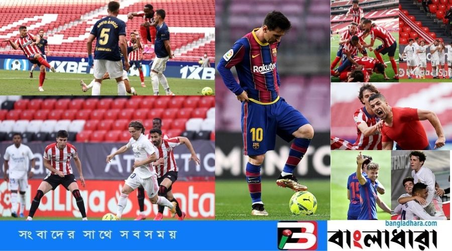 লা লিগার খেতাবি লড়াই থেকে ছিটকে গেলে আর্জেন্টিনার কিংবদন্তি ফুটবলার লিওনেল মেসির দল বার্সেলোনা। স্প্যানিশ ঘরোয়া লিগের এই মরশুমের শেষ দিনে খেতাব জয়ের লড়াই হবে দ্বিমুখী। নিজেদের ম্যাচে নাটকীয় জয় পেয়ে অ্যাটলেটিকো এই শিরোপা জয়ের লড়াই থেকে ছিটকে দিল বার্সাকে। শেষদিনে খেতাব জয়ের জন্য ঝাঁপাবে অ্যাটলেটিকো এবং রিয়াল মাদ্রিদ।