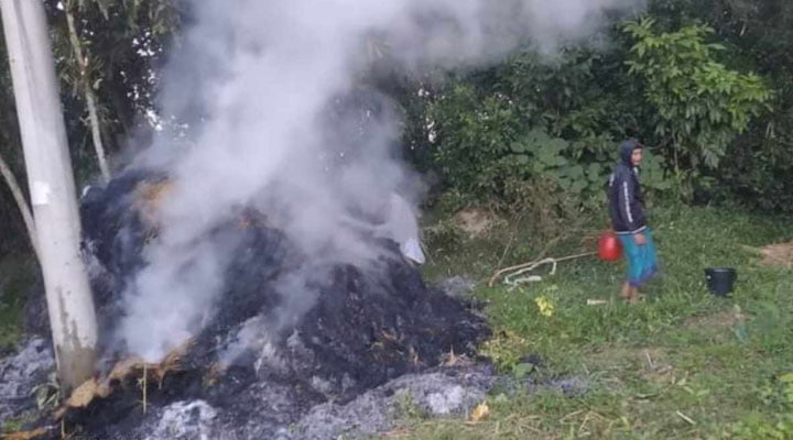 দৃর্বৃত্তের দেওয়া আগুনে পুড়েছে কৃষকের সোনালী ফসল।