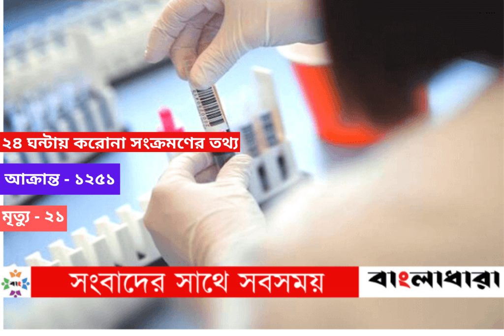 দেশে সোম থেকে মঙ্গলবার (১৯ মে) গত ২৪ ঘণ্টায় নতুন করে আরও ২১ জনের মৃত্যু হয়েছে। এতে মৃতের সংখ্যা বেড়ে দাঁড়ালো ৩৭০ জনে। পাশাপাশি একই সময়ে নতুন করে আরও এক হাজার ২৫১ জন করোনাভাইরাসে আক্রান্ত রোগী শনাক্ত হয়েছে। এতে আক্রান্ত শনাক্তের সংখ্যা দাঁড়িয়েছে ২৫ হাজার ১২১ জনে। আগেরদিনের তুলনায় এদিন শনাক্তের সংখ্যা কমেছে ৩৫১ জন।
