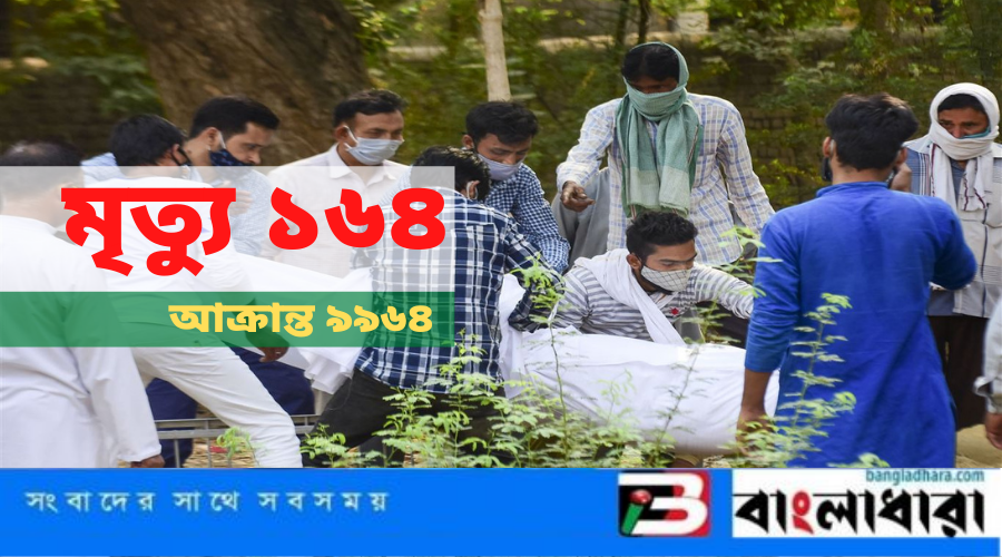 দেশে গত ২৪ ঘণ্টায় নভেল করোনাভাইরাসে আক্রান্ত হয়ে ১৬৪ জনের মৃত্যু হয়েছে। এ নিয়ে মৃতের সংখ্যা বেড়ে ১৫ হাজার ২২৯ জনে দাঁড়িয়েছে। এ ছাড়া দেশে নতুন করে আরও নয় হাজার ৯৬৪ জন আক্রান্ত হয়েছে। দেশে মোট নয় লাখ ৫৪ হাজার ৮৮১ জন করোনায় আক্রান্ত হয়েছে।