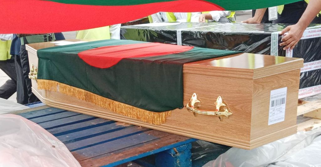 শনিবার (২৮ মে) বেলা ১১টা ১৫ মিনিটে তার মরদেহ নিয়ে বিমান বাংলাদেশ এয়ারলাইন্সের একটি ফ্লাইটটি হযরত শাহজালাল আন্তর্জাতিক বিমানবন্দরে অবতরণ করে। বিমানবন্দরে মরদেহ গ্রহণ করেন মুক্তিযুদ্ধ বিষয়ক মন্ত্রী আ ক ম মোজাম্মেল হক।
