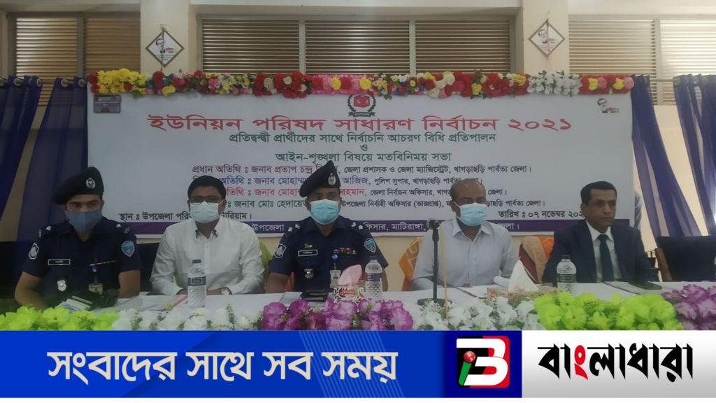 আগামী ১১নভেম্বর অনুষ্ঠিতব্য দ্বিতীয় ধাপে ইউনিয়ন পরিষদ নির্বাচনে প্রতিদ্বন্দ্বী প্রার্থীদের সাথে নির্বাচনি আচরন বিধি প্রতিপালন বিষয়ে পার্বত্য খাগড়াছড়ি জেলার মাটিরাঙ্গায় আইন-শৃঙ্খলা বিষয়ে মতবিনিময় সভা অনুষ্ঠিত হয়েছে।