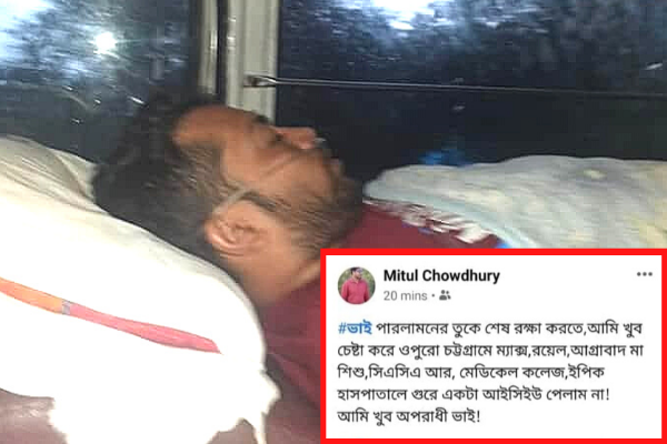 জানা গেছে, রোববার (১৯ জুলাই) সন্ধ্যা ৬ টা থেকে রাত ১০ টা পর্যন্ত ৪ ঘন্টা ধরে চট্টগ্রাম নগরীর ৫ টি হাসপাতালে ছুটেও কোন চিকিৎসা মেলেনি তার। এজমার সমস্যা নিয়ে ফেনী থেকে চট্টগ্রাম আসা টুটুলকে প্রথমে নিয়ে যাওয়া হয়েছিল নগরীর রয়েল হাসপাতালে। সেখানে জরুরি বিভাগের ডাক্তার তার অক্সিজেন স্যাচুরেশন মেপে জানিয়েছিলেন টুটুলের আইসিইউ দরকার। তবে রয়েল হাসপাতাল থেকে সাফ জানিয়ে দেয়া হয় তাদের কোন আইসিইউ খালি নেই।