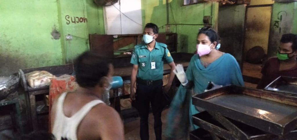 এসময় বিক্রেতা এবং কর্মীদের স্বাস্থ্য বিধি মেনে ও বিএসটিআই এর অনুমোদন সাপেক্ষে খাদ্য উৎপাদনের জন্য নির্দেশ দেন ভ্রাম্যমান আদালত।