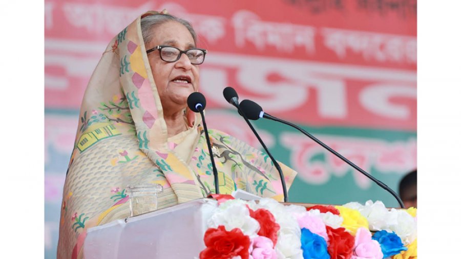 বিএনপির প্রতি ইঙ্গিত করে প্রধানমন্ত্রী বলেন, ‘তারা নাকি আমাদের উৎখাত করে দেবে। সময় দিয়েছিল ১০ ডিসেম্বর। বিজয়ের মাসে আওয়ামী লীগ সরকারকে উৎখাত করবে? যে সরকার জনগণের রায় নিয়ে বারবার নির্বাচিত হয়েছে। দেশের মানুষ এটা মেনে নিতে পারে না।’