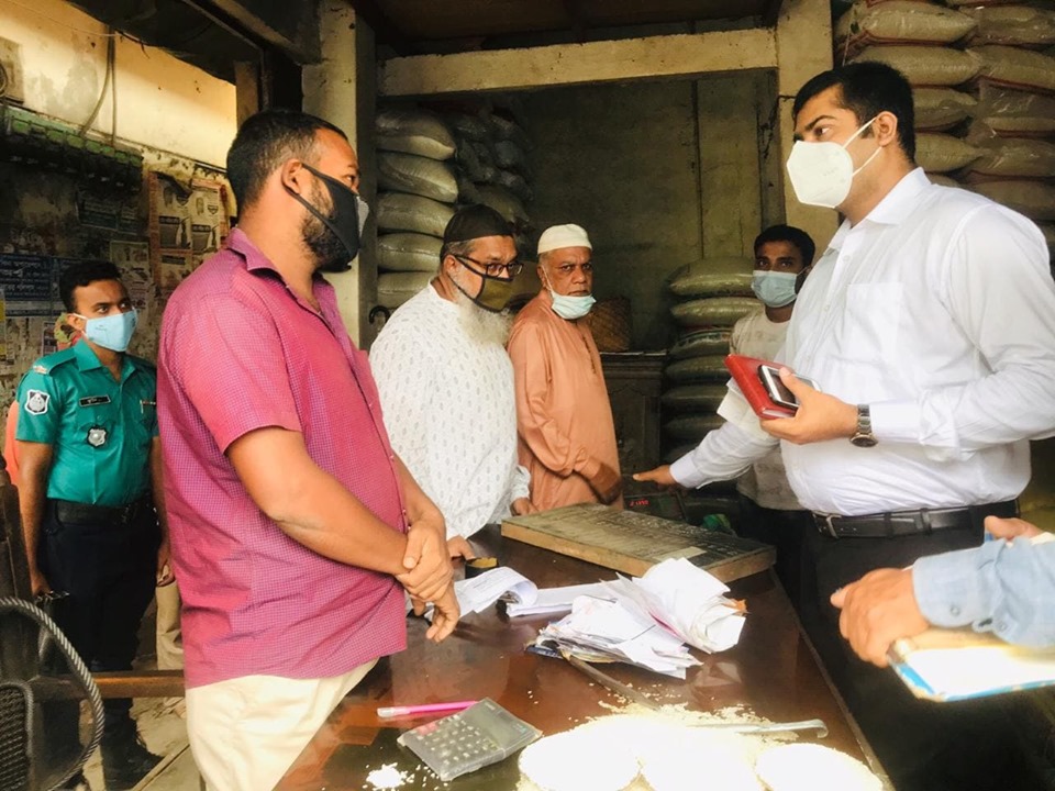 নির্বাহী ম্যাজিস্ট্রেট মো. আলী হাসান জানান, খাতুনগঞ্জের চালপট্টিতে অভিযান পরিচালনা করতে গিয়ে দেখি বন্যার অযুহাত দেখিয়ে বাড়তি দামে চাল বিক্রি করছেন ব্যবসায়ীরা। সেই সাথে মূল্যতালিকা না টাঙিয়ে, স্বাস্থ্যবিধি না মেনে ব্যবসা পরিচালনার করছিল ব্যবসায়ীরা। এই কারণে বাবুল ট্রেডার্সকে ১০ হাজার, সাদ ট্রেডার্সকে ১০ হাজার, জাফর ট্রেডার্সকে ৩ হাজার এবং ফরিদ ট্রেডার্সকে ২ হাজার টাকা জরিমানা করা হয়।