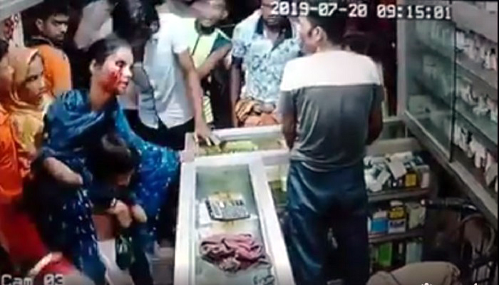 একপর্যায়ে কয়েকজন যুবকের সহায়তায় জে এফ মেডিকেল হল নামে পাশের ফার্মেসি দোকানে ঢুকে পড়েন রক্তাক্ত ওই নারী। এ সময় তার নিজের ছেলেকেই আঁকড়ে ধরে ছিলেন তিনি।