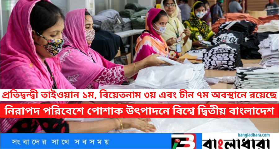 নিরাপদ এবং উন্নত পরিবেশে পোশাক উৎপাদন ব্যবস্থাপনায় আন্তর্জাতিক নৈতিক মান নিরীক্ষা (এথিক্যাল অডিট) সূচকে দ্বিতীয় স্থান অর্জন করেছে বাংলাদেশ। বাংলাদেশের ওপরে অর্থাৎ প্রথম অবস্থানে রয়েছে তাইওয়ান। প্রতিদ্বন্দ্বী ভিয়েতনাম তৃতীয় এবং চীন সপ্তম অবস্থানে রয়েছে।
