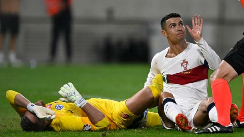 সৌদি ক্লাবে উড়ন্ত ফর্মে থেকেই জাতীয় দলে এসেছিলেন ক্রিশ্চিয়ানো রোনালদো। আল-নাসরের হয়ে শেষ তিন ম্যাচে ৬ গোল করেই নিজ দেশের হয়ে খেলতে নেমেছেন তিনি। তবে স্লোভাকিয়ার সঙ্গে ম্যাচটি হয়ত ভুলে যেতেই চাইবেন সিআরসেভেন। দল জয় পেলেও এদিন কিছুটা বিবর্ণ ছিলেন রোনালদো। গোল তো পাননি, সেইসঙ্গে নিজের আচরণের জন্য নিষিদ্ধও হয়েছেন।