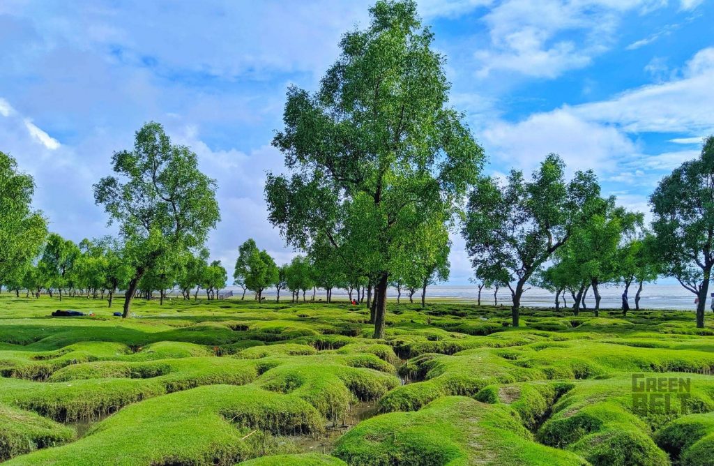 এই বিচে বাহারি রঙের বৃক্ষ আর আর সবুজের সমারোহ পরিবেশকে আরও সৌন্দর্য মণ্ডিত করেছে। আছে সবুজগালিচার বিস্তৃত ঘাস। তার মাঝে বয়ে চলেছে আঁকাবাঁকা নালা। জোয়ারের পানিতে সবুজ ঘাসের ফাঁকে নালাগুলো কানায় কানায় ভরে ওঠে। জোয়ার চলে গেলে ফিরে যায় আগের অবস্থায়। মৃদু বাতাস আর গাছের পাতার ফিসফিসানিতে তপ্ত দুপুর, স্নিগ্ধ বিকেল কিংবা বিষণ্ণ সন্ধ্যাটি যে কাউকে রাঙিয়ে তুলবে বর্ণিল আলোকছটায়। খাল ধরে এগিয়ে গেলে মিলবে সমুদ্রের অপার সৌন্দর্য উপভোগের এক অভাবনীয় মুহূর্ত।
