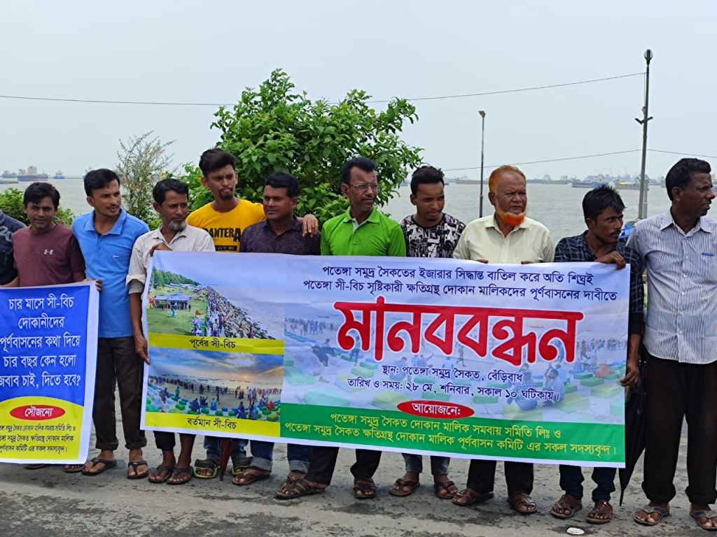 পতেঙ্গা সমুদ্র সৈকত দোকান মালিক সমবায় সমিতি ও পতেঙ্গা সমুদ্র সৈকত ক্ষতিগ্রস্ত দোকান মালিক পুনর্বাসন কমিটির আয়োজিত মানববন্ধনে সভাপতিত্ব করেন সমিতির সভাপতি ওয়াহিদুল আলম মাস্টার।