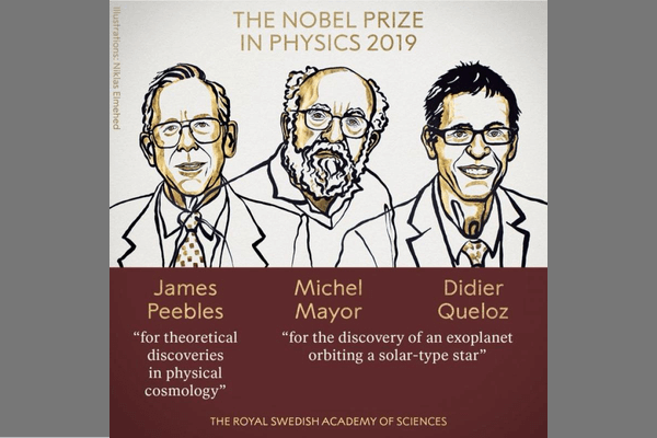 মহাকাশ নিয়ে গবেষণা ও পদার্থবিজ্ঞানে বিশেষ অবদানের জন্য এ বছর যৌথভাবে নোবেল জিতেছেন তিন বিজ্ঞানী। তারা হলেন, জেমস পিবলস, মিশেল মেয়র ও দিদিরি কোয়েলজ।