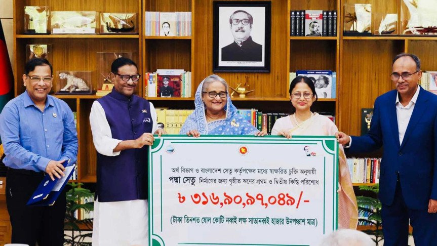 পদ্মা সেতু নির্মাণে সরকারের কাছ থেকে নেওয়া ঋণ পরিশোধ শুরু হয়েছে। প্রথম দুই কিস্তির প্রায় ৩১৭ কোটি টাকা সরকারকে পরিশোধ করা হয়েছে। আজ বুধবার (৫ এপ্রিল) গণভবনে সরকারপ্রধান শেখ হাসিনা ৩১৬ কোটি ৯০ লাখ ৯৭ হাজার ৪৯ টাকার একটি চেক গ্রহণ করেন। প্রধানমন্ত্রীর হাতে এ চেক তুলে দেন সড়ক পরিবহন ও সেতু মন্ত্রী ওবায়দুল কাদের।