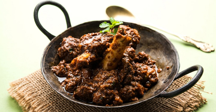 মাংস ধুয়ে নিয়ে পানি ঝরিয়ে নিন। একটি পাত্রে মাংস, টক দই, লবণসহ সব মসলা একসঙ্গে মেখে রেখে দিন মিনিট বিশেক। চুলায় হাঁড়ি বসিয়ে তেল গরম করুন। গরম হলে তাতে অর্ধেক পেঁয়াজ কুচি, দারুচিনি, এলাচ, তেজপাতা হালকা বাদামি করে ভেজে নিন। এবার তাতে মাংস দিয়ে কষিয়ে নিন। সামান্য পানি যোগ করে কম আঁচে রান্না করুন। মাংস সেদ্ধ হয়ে মাংসের উপর তেল ভেসে উঠলে নামিয়ে নিন। এবার অন্য একটি পাত্রে তেল গরম করে তাতে পেঁয়াজ কুচি, রসুনের কোয়া, টমেটো কুচি দিয়ে সোনালি করে ভেজে মাংসের উপর দিয়ে দিন। পোলাও, খিচুড়ি, রুটি কিংবা পরোটার সঙ্গে পরিবেশন করতে পারবেন।