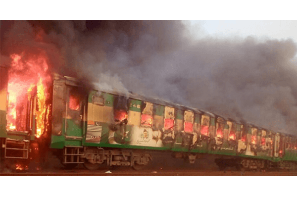 বৃহস্পতিবার (৩১ অক্টোবর) সকালের নাস্তা তৈরি করার সময় যাত্রীদের কাছে থাকা গ্যাস স্টোভ বিস্ফোরণের পর ওই ট্রেনটিতে আগুন ধরে যায়। খবরে জানিয়েছে পাকিস্তানের পত্রিকা দ্য ডন।