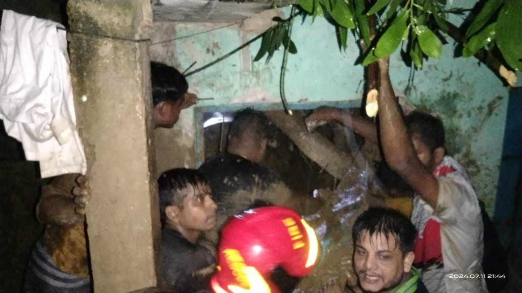 স্থানীয়দের বরাতে পৌরসভার ১২নং ওয়ার্ড কাউন্সিলর এম এ মনজুর বলেন, পরমাণু শক্তি কমিশন অফিসের নিরাপত্তাকর্মী মোহাম্মদ সেলিমের মালিকানাধীন টিন সেট বাড়ির উপর রাত ৮টার দিকে একটি গাছসহ পাহাড় ধ্বসে পড়ে। এসম সময় বাড়িতে সাত সদস্য অবস্থান করলেও সেলিমের স্ত্রী নুর জাহান, তাদের সন্তান লামিয়া হাবিবা, হুজাইফা, মাওয়া ও মিম মাটির নিচে চাপা পড়ে। তাত্ক্ষণিক প্রচেষ্টা তিনজনকে জীবিত বের করা গেলেও মিমকে উদ্ধারে সময় বেশি লাগায় তার মৃত্যু ঘটে। প্রশাসন ও ফায়ার সার্ভিসের কর্মীদের সাথে স্থানীয়রাও উদ্ধারে অংশ নেন।