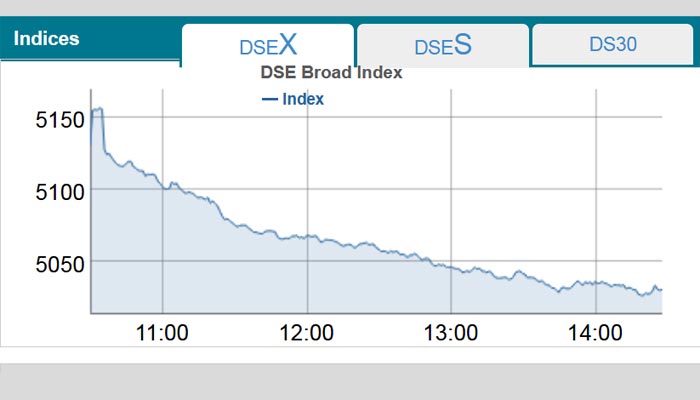 বেশির ভাগ শেয়ারের দরপতনের প্রভাবে এদিন ডিএসইর সবগুলো সূচকেই বড় ধরনের পতন লক্ষ্য করা গেছে। ডিএসইএক্স সূচক আগের দিনের চেয়ে ৯৯ পয়েন্ট কমে ৫ হাজার ৩১ পয়েন্টে নেমে এসেছে। এছাড়া ডিএসইএস সূচক ১৮ পয়েন্ট কমে ১ হাজার ১৫৭ পয়েন্টে ও ডিএসই৩০ সূচক ৩০ পয়েন্ট কমে ১ হাজার ৭৯৯ পয়েন্টে নেমে এসেছে। এদিন ডিএসইতে প্রায় ৩৫৭ কোটি টাকার শেয়ার ও মিউচ্যুয়াল ফান্ড কেনাবেচা হয়, যা আগের দিনের চেয়ে প্রায় ৩৮ কোটি টাকা কম।