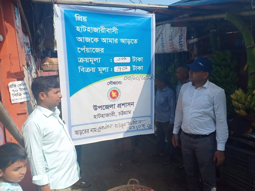 হাটহাজারী উপজেলার মির্জাপুর ইউনিয়নের সরকারহাট বাজার ও ধলই ইউনিয়নের কাটিরহাট বাজারে অভিযান পরিচালনা করেছে উপজেলা প্রশাসন। এসময় পেঁয়াজের মূল্য ৬৫ থেকে ৭৫ টাকার মধ্যে পাওয়া যাওয়ায় উপজেলা প্রশাসনের উদ্যোগে মালিকপক্ষের সাথে আলোচনা করে তাৎক্ষণিকভাবে পেঁয়াজের নির্ধারিত মূল্য দৃশ্যমান জায়গায় টানিয়ে দেয়া হয়।