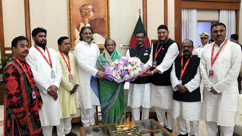 প্রধানমন্ত্রীকে ফুলেল শুভেচ্ছা জানালেন নবনির্বাচিত যুবলীগের চেয়ারম্যান-সম্পাদক