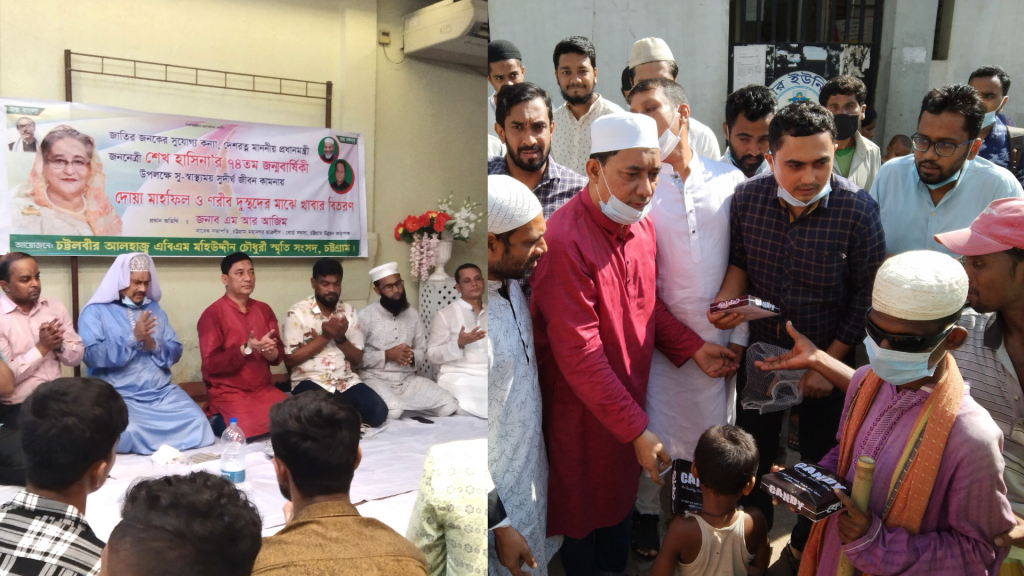 প্রধানমন্ত্রী শেখ হাসিনার ৭৪তম জন্মদিন উপলক্ষে ‘এবিএম মহিউদ্দীন চৌধুরী স্মৃতি সংসদ’র উদ্যোগে নগরীর জিইসি প্যালেস হল রুমে দোয়া-মোনাজাত ও অসহায়দের মাঝে খাবার বিতরণের আয়োজন করা হয়েছে।