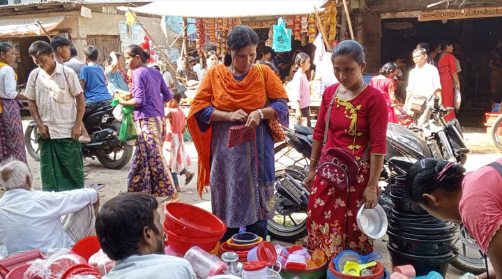 চড়ুই পাড়া থেকে বাজার করতে হ্লাশে মুই বলেন, বছরের একবার প্রবারণা আসে। তাই বিহারের ছোয়াইং (আহার) জন্য বাজার করতে এসেছেন। ক্রয়ের নাগালে বাইরে হলেও আনন্দের ভাগাভাগি করতে চান পরিবারদের মাঝে।