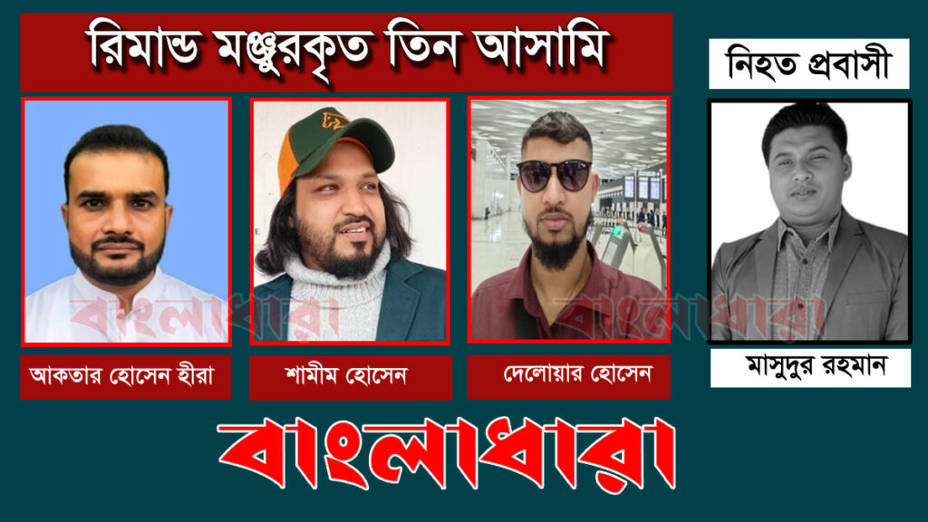 রিমান্ড মঞ্জুর হওয়া তিন আসামি হলেন— আকতার হোসেন হীরা, শামীম হোসেন ও দেলোয়ার হোসেন। আকতার হোসেন হীরা দাঁতমারা ইউনিয়ন যুবলীগের সভাপতি।